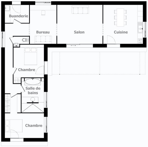 À l'intérieur, la succession des pièces en enfilade génère une profondeur et de longues perspectives. La maison paraît ainsi plus spacieuse (surface habitable : 110 m2).